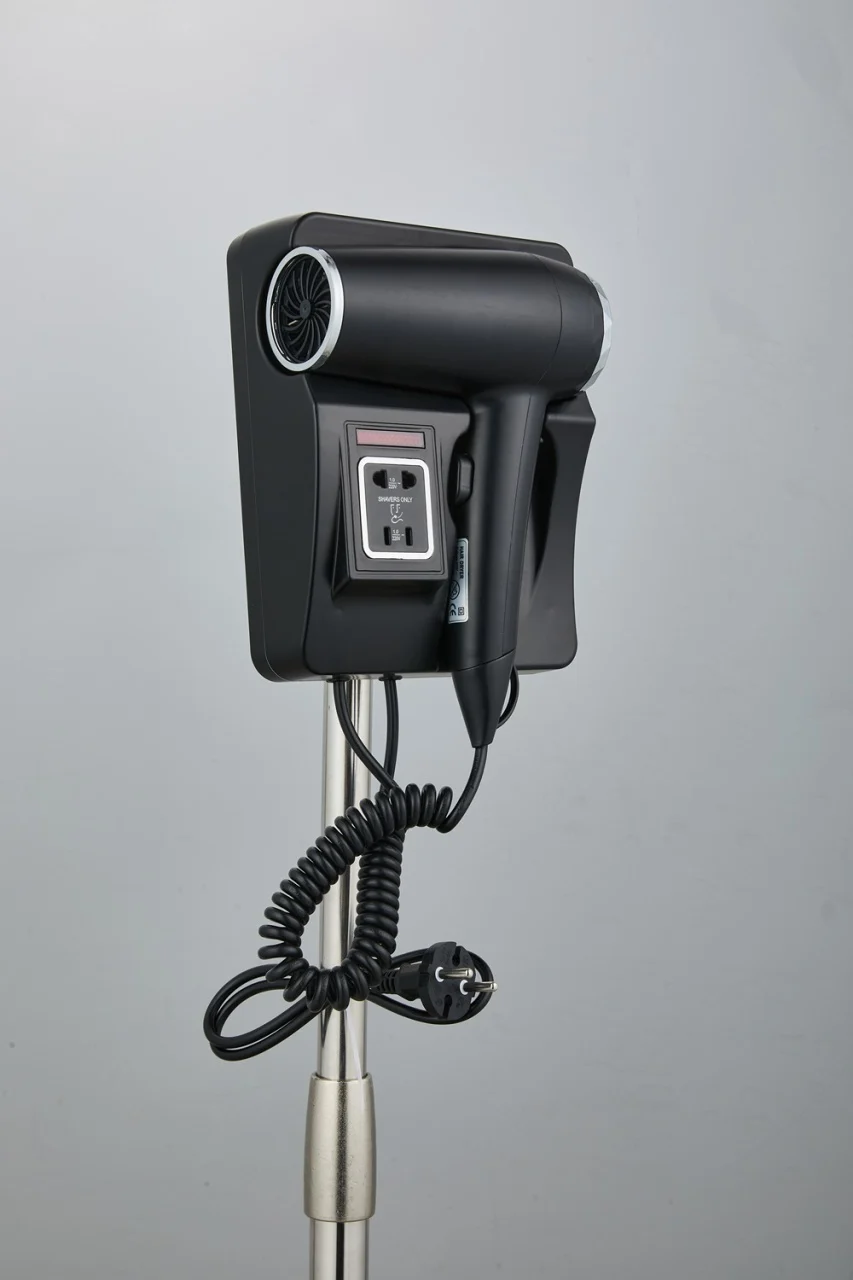 Descriere Produs: Uscătorul de păr profesional tip hotelier este ideal pentru utilizarea în hoteluri, pensiuni, sau acasă, oferind o fixare ușoară pe perete sau în sertarul mobilierului din baie. Fabricat din plastic ABS rezistent la șocuri și umiditate, acest uscător de păr combină durabilitatea cu funcționalitatea.