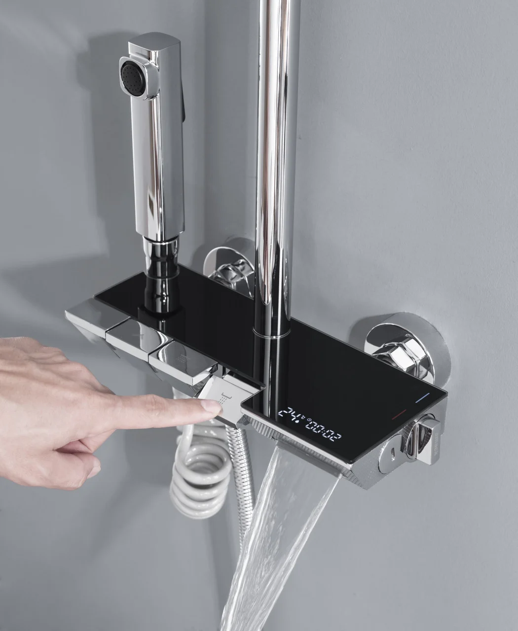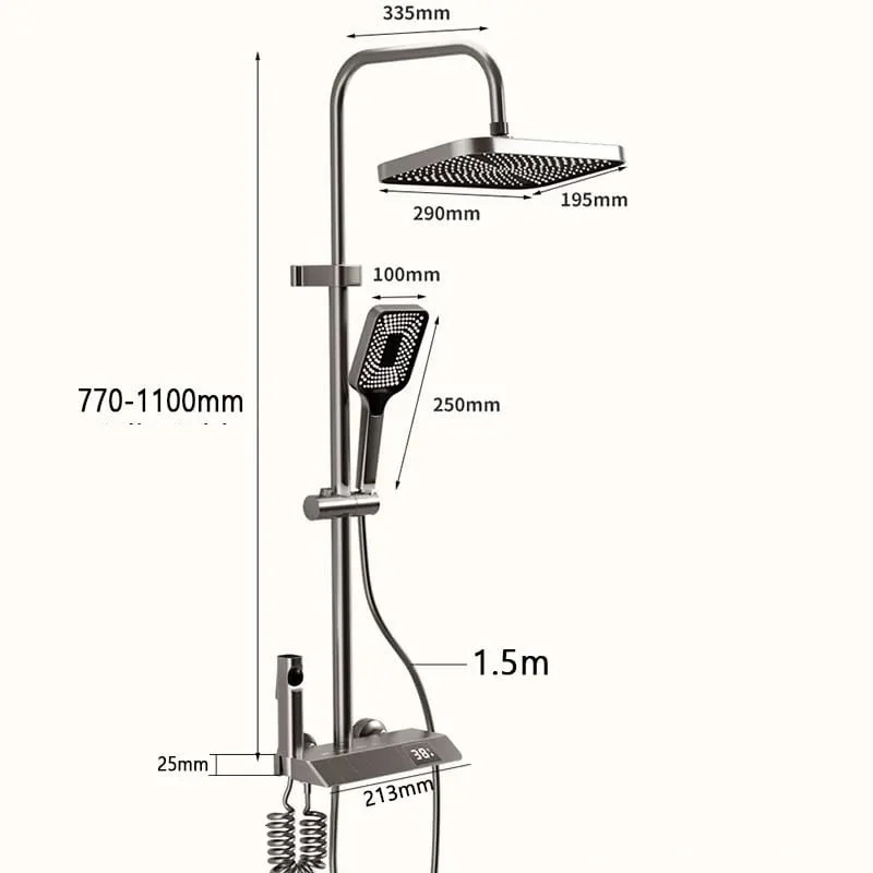 Afisaj LCD pentru Temperatura Apei: Dispune de un afișaj LCD integrat pentru afișarea temperaturii apei, oferindu-ți un control precis și comod asupra temperaturii apei în timpul dușului.